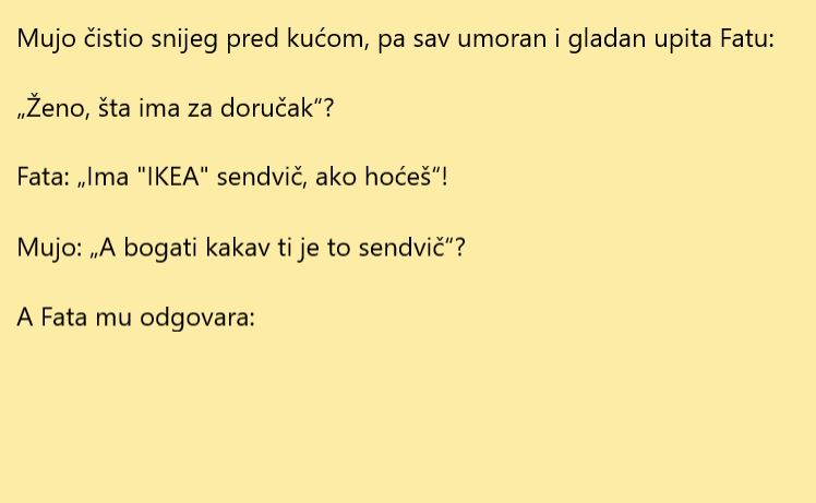 Ikea je poznata fabrika namještaja, i zapravo ona nije samo fabrika, ona je sinonim za kvalitetan i praktičan namještaj. U ovom tekstu imamo jednu zanimljivu priču koju prenosimo gdje je ikea iskorištena da se napravi šala na račun Muje koji je čistio snijeg. Nakon toga ide malo više zanimljivosti o samoj Ikei.