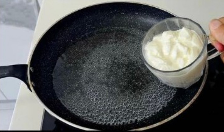 Priprema započinje zagrijavanjem vode do ključanja, nakon čega se skida s vatre te se u nju dodaje jogurt. Smjesu je potrebno dobro izmiješati dok ne dobijete tekuću masu. Ova kombinacija jogurta i kipuće vode stvara savršenu osnovu za tijesto koje će biti mekano, a istovremeno elastično.