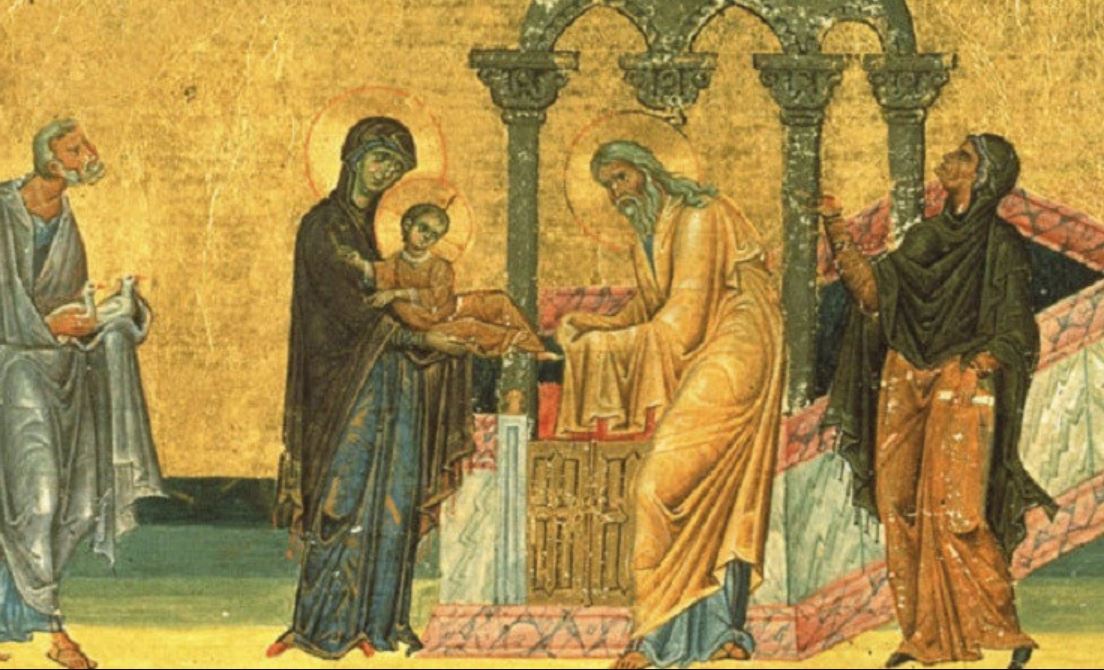 Jednog dana, prema hrišćanskoj tradiciji, Deva Marija donela je malog Isusa u jerusalimski hram. Simeon, već u poznim godinama, vođen Duhom Svetim, prepoznao je u detetu Obećanog.