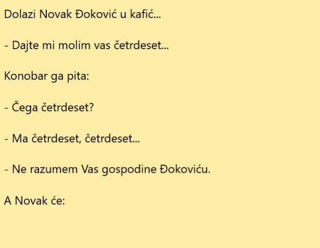 Popularni Novak Đoković smatra se najboljim sportistom svih vremena, kada je riječ o Srbiji. Svakako da se smatra i najboljim teniserom ikada. Srbija je zemlja nepresušnog izvora talenata i što se tiče gotovo svih sportova u najmanju ruku ne mogu se osramotiti svojim sportistima. Donosimo jednu jako zanimljivu priču o jednoj situaciji kada je Đoković ušao u jedan kafić.