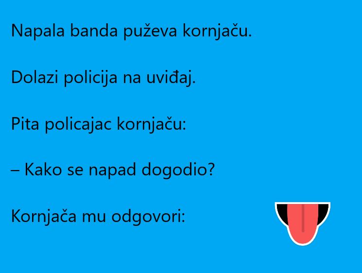 Jedna basna je ponovo na repertoaru. Poznato je da su basne priče gdje životinje preuzimaju ljudske osobine i imitiraju svakodnevni život. U ovoj priči banda puževa je napala kornjaču. Jasno vam je odmah da se ovdje radi o humoru, ne zna se ko je sporiji, puž ili kornjača. Evo kako je to izgledalo.