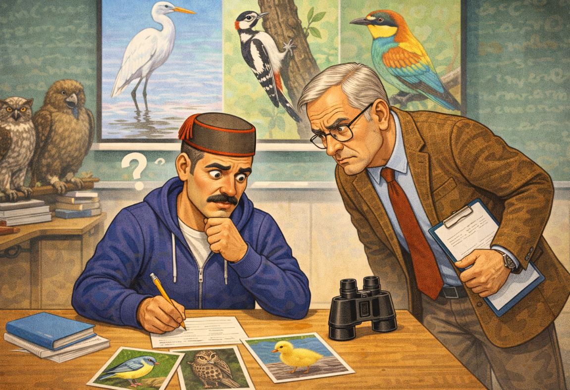 Mnogima nepoznat pojam – ornitologija. To je grana zoologije koja proučava ptice. Zapravo sve o njima, njihovo ponašanje, anatomiju, fiziologiju, evoluciju, baš sve. Ornitologija je dobro poznata studentima biologije a evo jedna priča koja nas vodi do jedne scene na katedri za ornitologiju. U toku je polaganje ispita iz ove naučne oblasti a prenosimo vam dijalog studenta i profesora.