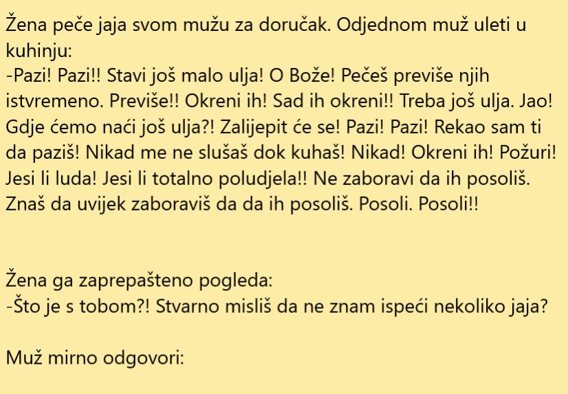 Mnogi muškarci imaju problema kada voze svoje žene zbog stalnih prigovaranja. Pojedine žene vole da prigovaraju svojim muževima dok oni voze i to ih jako iritira. Jedan muškarac je uspio da napravi jednu šalu sa svojom ženom na taj račun ali i da ju poduči jednoj važnoj lekciji. Pročitajte ovu priču, sigirno će vam se svidjeti.